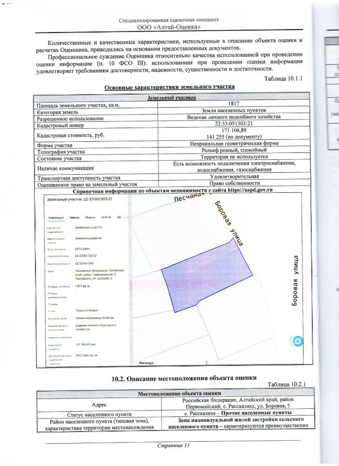 Земельный участок из земель населенных пунктов с кадастровым номером 22:33:051303:21, адрес: Российская Федерация, Алтайский край, Первомайский район, с.Рассказиха, ул.Боровая 5, общей площадью 1817 квадратных метров, вид разрешенного использования для ведения личного подсобного хозяйства.