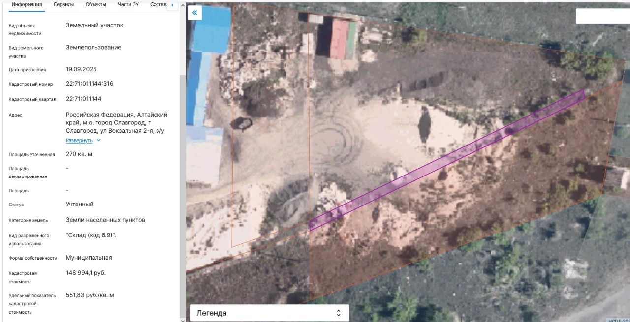 земельный участок с кадастровым номером 22:71:011144:316 , общая площадь 270 кв.м, расположенный по адресу: Алтайский край, г. Славгород, ул. Вокзальная 2-я, земельный участок 6/2