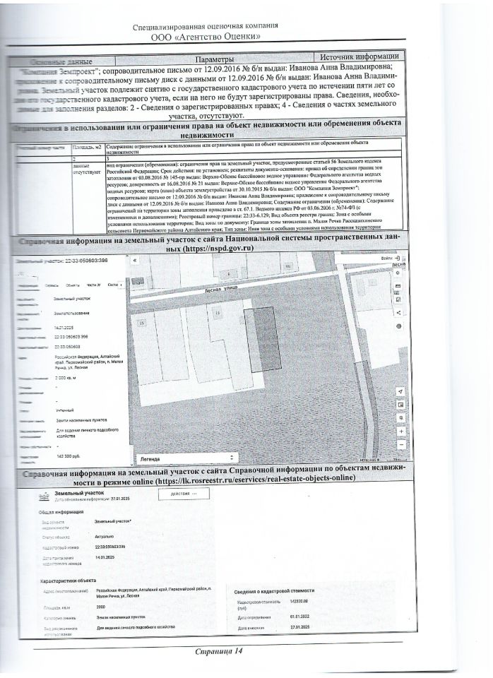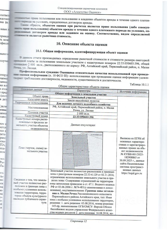 Земельный участок из земель населенных пунктов с кадастровым номером 22:33:050603:396, адрес: Российская Федерация, Алтайский край, Первомайский район, п.Малая Речка, ул.Лесная, общей площадью 2000 квадратных метров, вид разрешенного использования для ведения личного подсобного хозяйства.