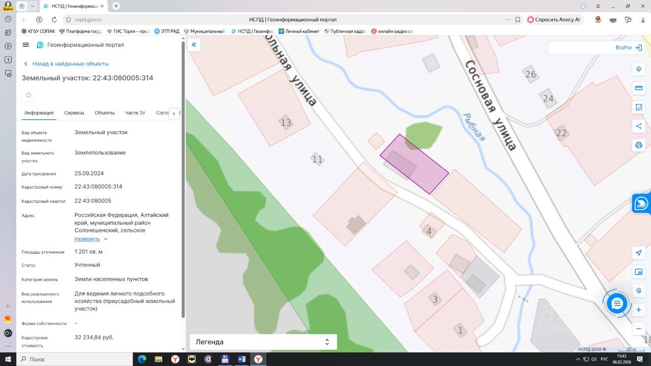земельный участок с кадастровым номером 22:43:080005:314. Адрес: Российская Федерация, Алтайский край, муниципальный район Солонешенский, сельское поселение Тополинский сельсовет, с. Рыбное, ул. Школьная, земельный участок 8. Категория земель: земли населенных пунктов. Виды разрешенного использования: для ведения личного подсобного хозяйства (приусадебный земельный участок). Площадь: 1201 кв.м. Срок аренды 20 лет
