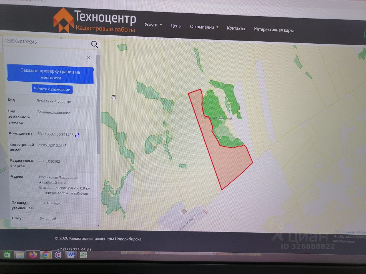 Земельный участок кадастровый номер 22:05:020102:245 общей площадью 96,1107 га местоположение: Российская Федерация, Алтайский край, Благовещенский район, 0,8 км на северо-восток от п. Курган