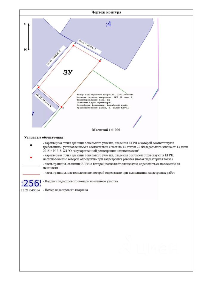 Земельный участок с кадастровым номером 22:21:040014:230 площадь 1867 по адресу Российская Федерация, Алтайский край, муниципальный район Краснощёковский, сельское поселение Чинетинский сельсовет, поселок Талый Ключ, земельный участок 4а