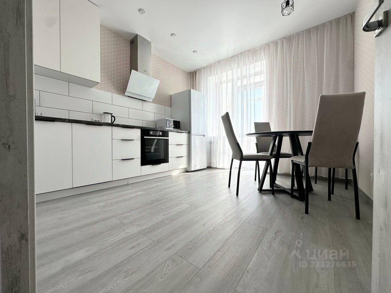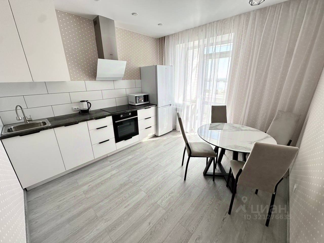 Есть все, заходи и живи: кухонный гарнитур, холодильник, посудомоечная машина, электрическая варочная поверхность, электрический духовой шкаф, микроволновая печь, чайник, стол и стулья, диван, стол журнальный, телевизор, прихожая, гардеробная, гладильная доска, утюг, сушилка, пылесос, водонагреватель, стиральная машина.