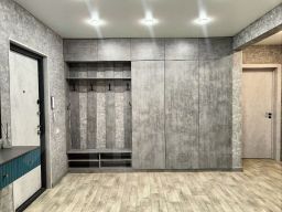 - Встроенный шкаф в гостиной предназначен для хранения вещей.