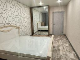 - Спальная комната оборудована вместительным шкафом-купе и удобной кроватью с новым ортопедическим матрасом.