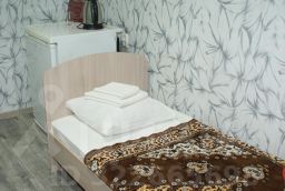 Одноместный номер, состоящий из жилой комнаты, прихожей, санузла, в котором находится: унитаз душ, раковина. Номер оснащен корпусной мебелью холодильником, телевизором.