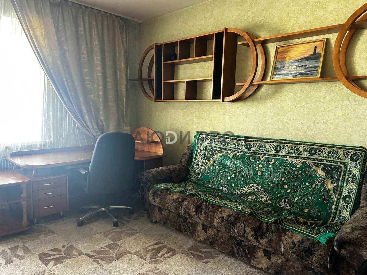 Квартира очень просторная 49кв.м. и лоджия 10кв.м., есть все для комфортного проживания: шкаф в прихожей, платяной шкаф, рабочий стол и кресло, диван, кровать, книжный шкаф, техника: телевизор, пылесос, плита, холодильник, микроволновка, стиральная машина и пр.