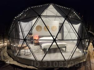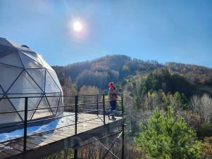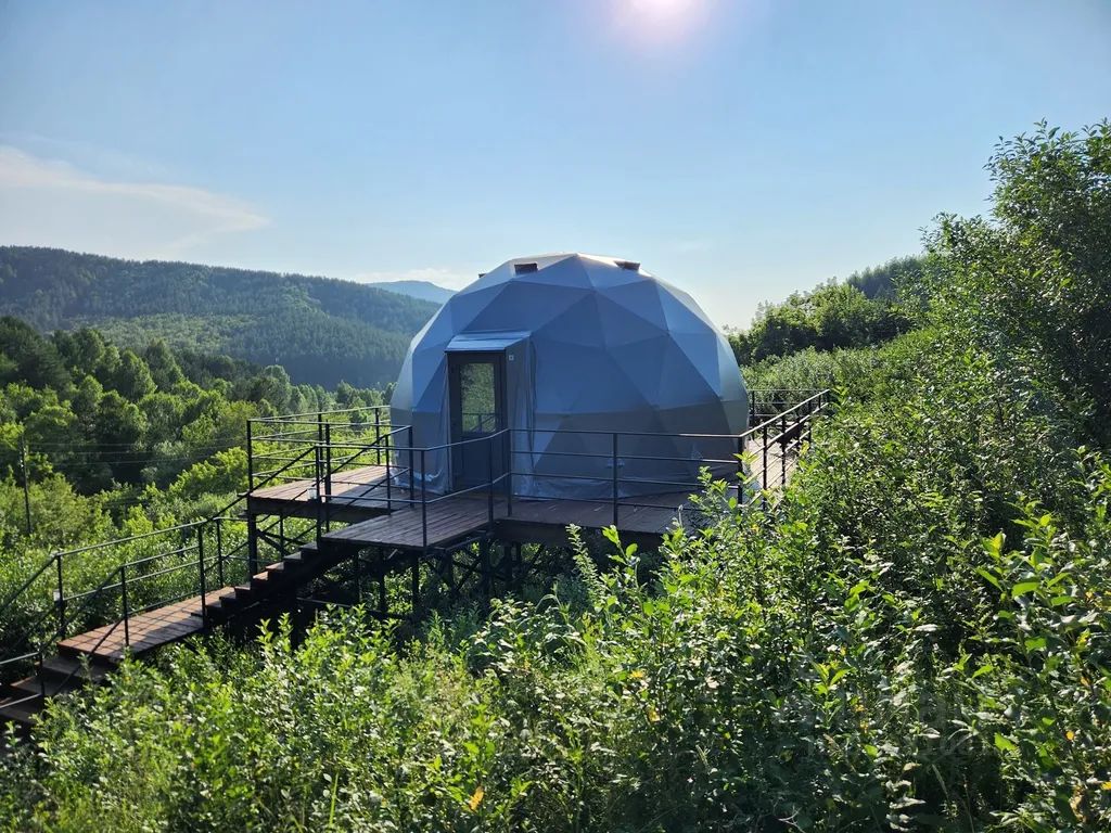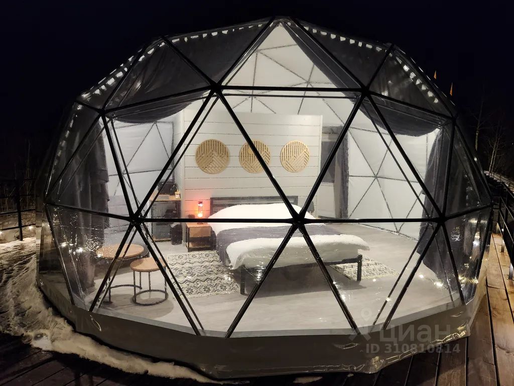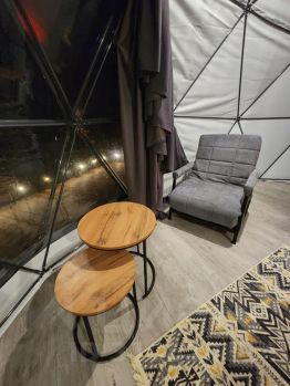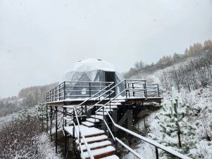 Теплая сфера (геокупол) с шикарным видом на гору "Церковку", собственной террасой и одной спальней. Находится в 5 минутах езды на автомобиле от центра курортной зоны.
