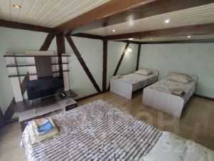 Просторный номер 60м²( спальня, кухня-гостиная и прихожая), рассчитан на 9 человек (сверх за отдельную плату). Все удобства в номере. Полноценная кухня, санузел. 2 ТВ с выходом в интернет! Wi-Fi. Стиральная машина.