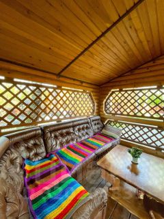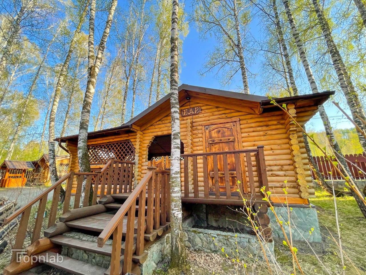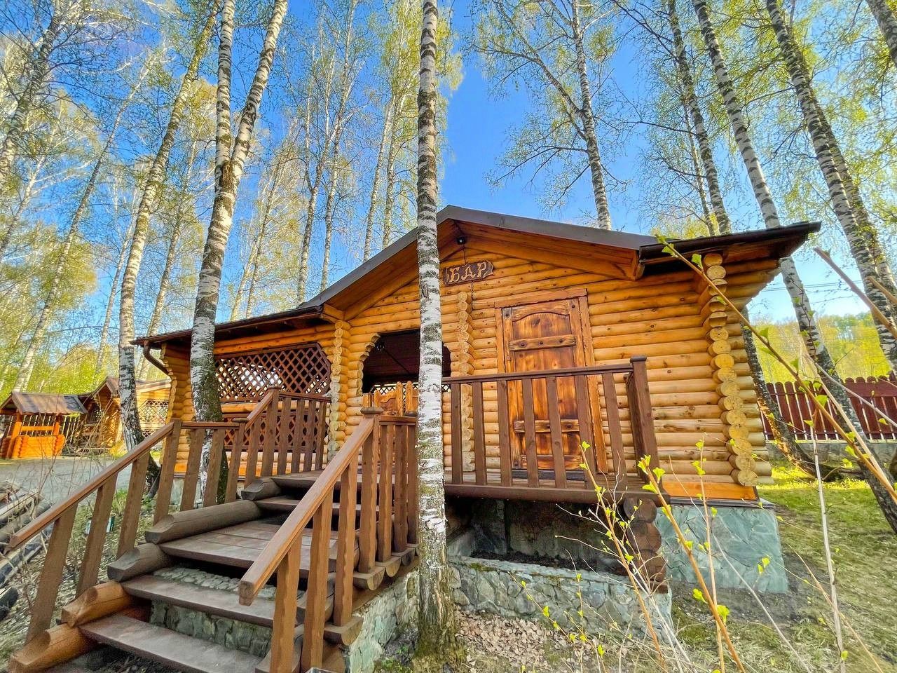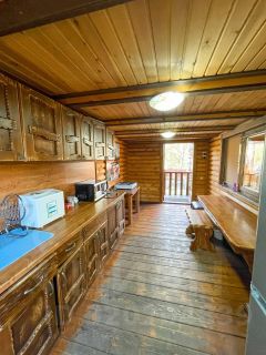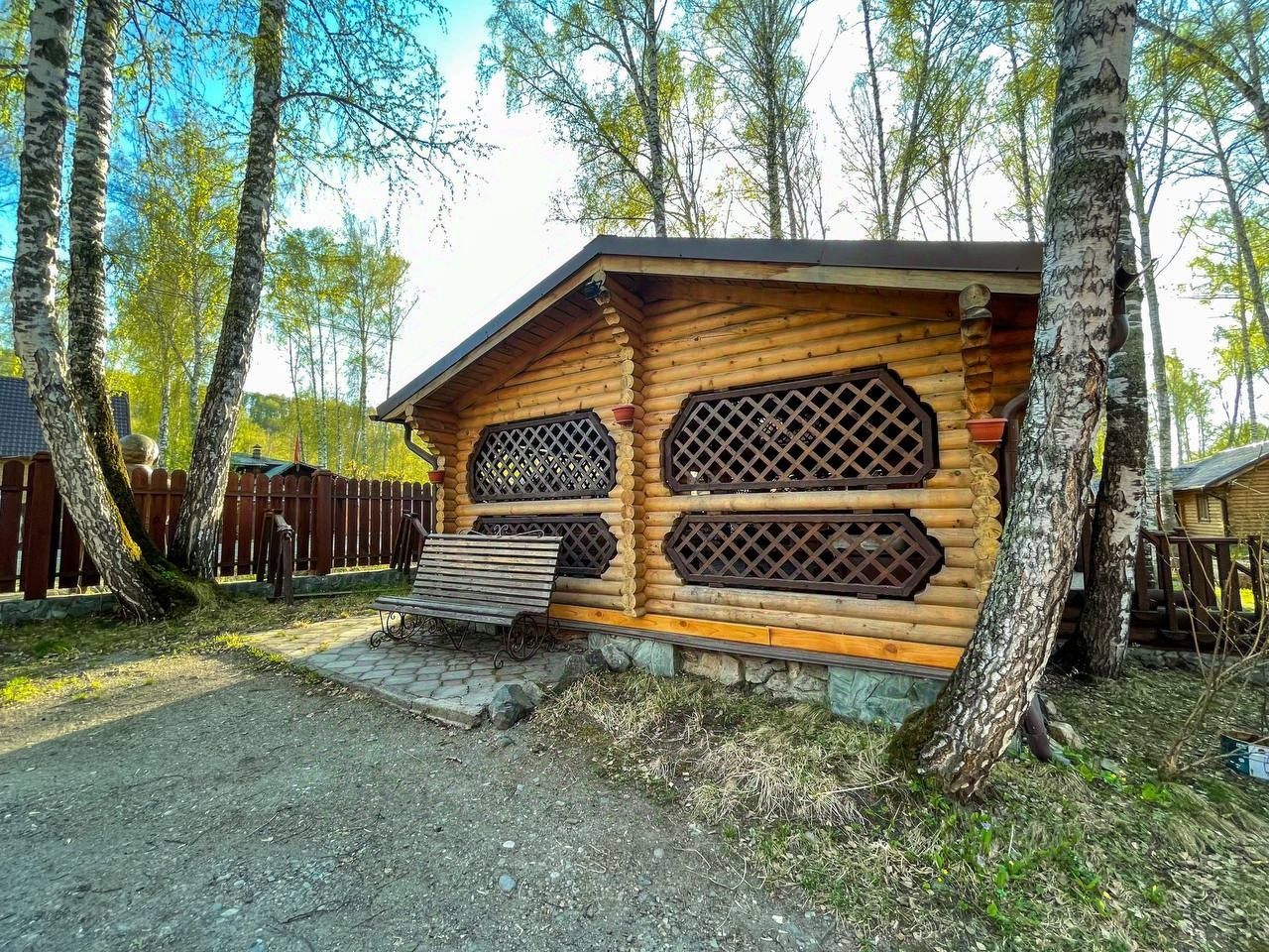 В сам комплекс входит 8 домов, 4 из которых двух этажные, остальные три отдельно стоящие , так же на территории имеются три деревянные беседки, одна из которых с кухней, дома построены из целлиндрованного бруса кедры, ЭКО материалы, все они полностью с удобствами и коммуникацией.