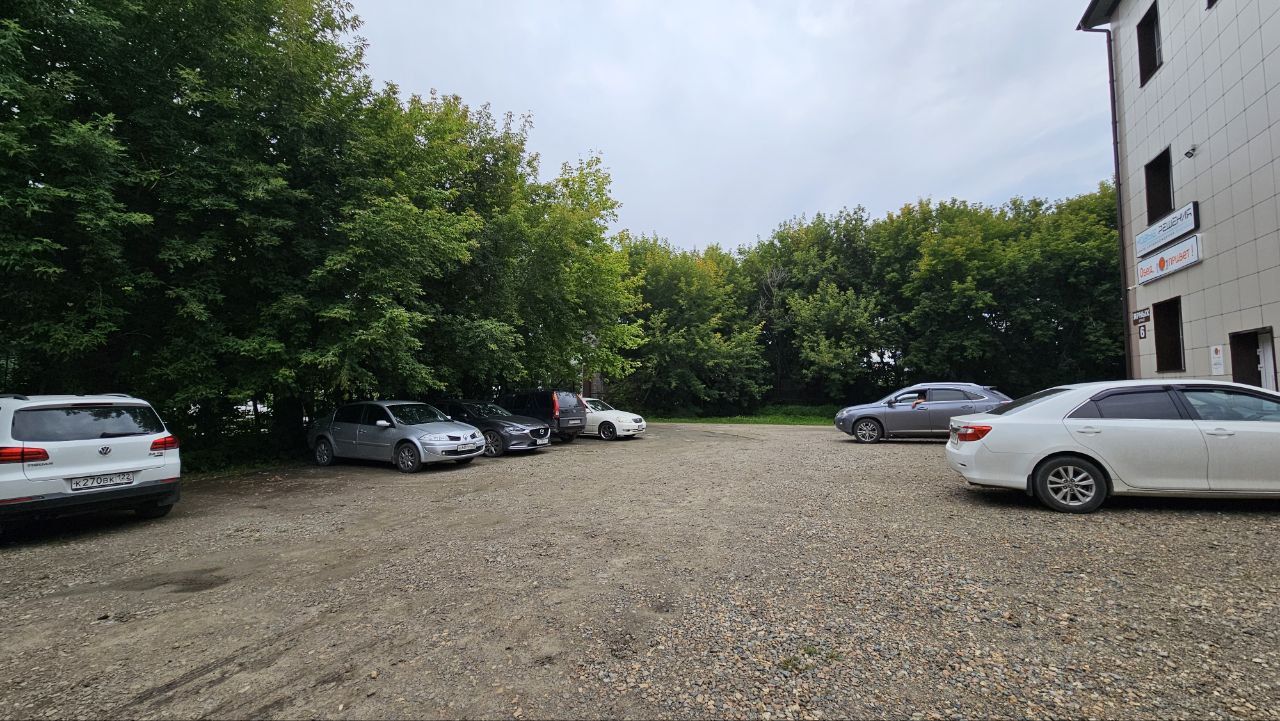 Здание находится близко к центру, располагается на земельном участке площадью 5950 кв.м. Земля в долгосрочной аренде. Участок большой, ровный, огорожен забором, имеются ворота для въезда транспорта. Участок может быть зонирован и одновременно использоваться для парковки в т.ч. грузового транспорта и спецтехники, размещения контейнеров, организации склада, мест отдыха и тд.