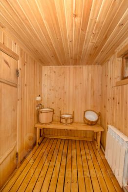Баня: Баня также выполнена из натурального кедра с просторной террасой общей площадью 110 м², обеспечивающей комфортный релакс.