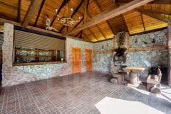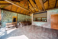 Зона барбекю и отдыха: Просторная беседка площадью 60 м² оборудована удобствами для приготовления и приема пищи.