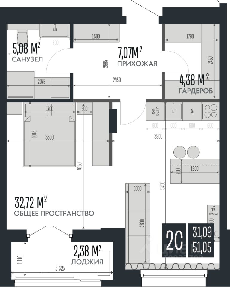 51,05 м²