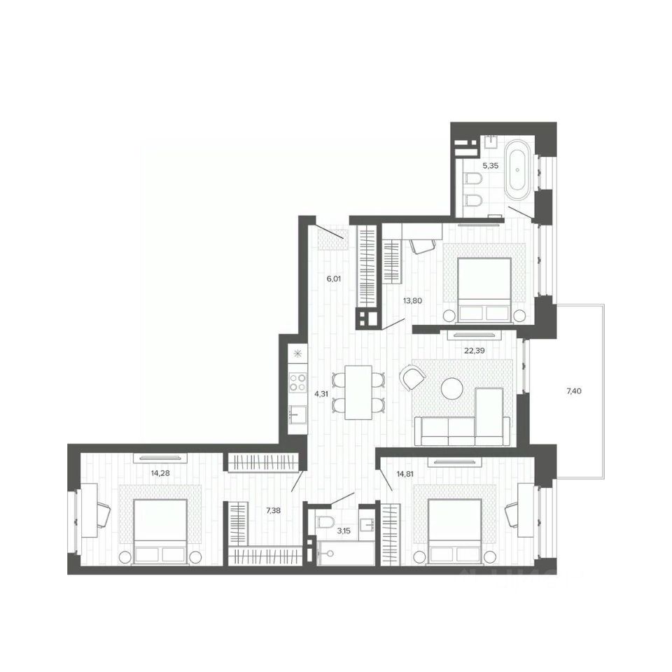 Продаётся 4-комнатная квартира в строящемся доме (Меланж), срок сдачи: IV-кв. 2026, общей площадью 98.89 кв.м., на 6 этаже. Меланж - дом рядом с парком.