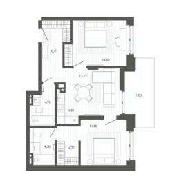 Продаётся 3-комнатная квартира в строящемся доме (Меланж), срок сдачи: IV-кв. 2026, общей площадью 72.17 кв.м., на 3 этаже. Меланж - дом рядом с парком.