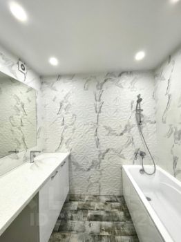 • Раздельный санузел выложен дорогим итальянским кафелем. В ванной каменная столешница с интегрированной раковиной-лодочкой.