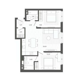 Продаётся 3-комнатная квартира в строящемся доме (Меланж), срок сдачи: IV-кв. 2026, общей площадью 64.13 кв.м., на 2 этаже. Меланж - дом рядом с парком.