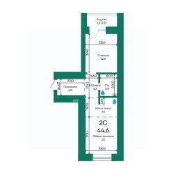 Продаётся 2-комнатная квартира в строящемся доме (Корпус 2), срок сдачи: III-кв. 2026, общей площадью 44.6 кв.м., на 10 этаже.