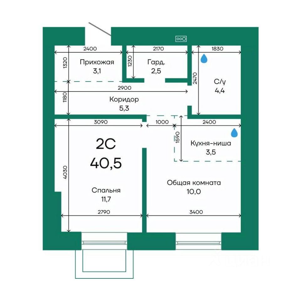 Продаётся 2-комнатная квартира в строящемся доме (Корпус 1), срок сдачи: IV-кв. 2025, общей площадью 40.5 кв.м., на 1 этаже.