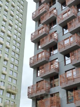 Жилые высотки устроены таким образом, что окна с одной стороны дома выходят на бор, а с другой на реку Обь