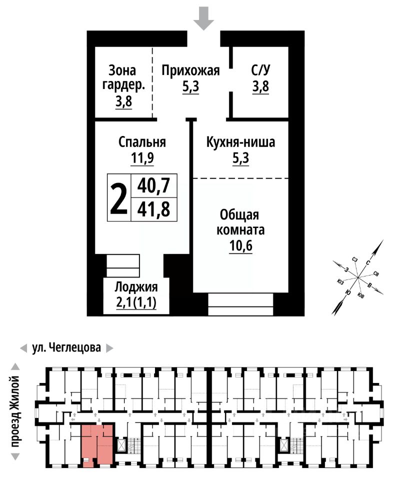 Продаётся 2-комнатная квартира в строящемся доме (Корпус 1), срок сдачи: II-кв. 2027, общей площадью 41 кв.м., на 2 этаже. ЖК "Тургенев" на ул. Чеглецова, 25а представляет из себя два кирпичных здания высотой 9 этажей.