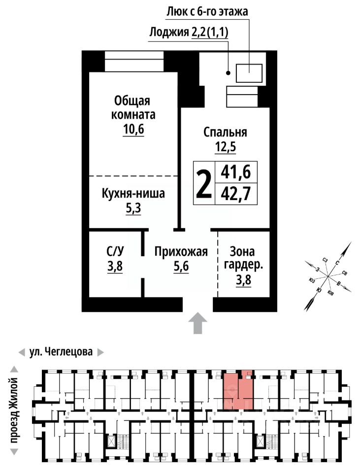 Продаётся 2-комнатная квартира в строящемся доме (Корпус 1), срок сдачи: II-кв. 2027, общей площадью 42 кв.м., на 6 этаже. ЖК "Тургенев" на ул. Чеглецова, 25а представляет из себя два кирпичных здания высотой 9 этажей.