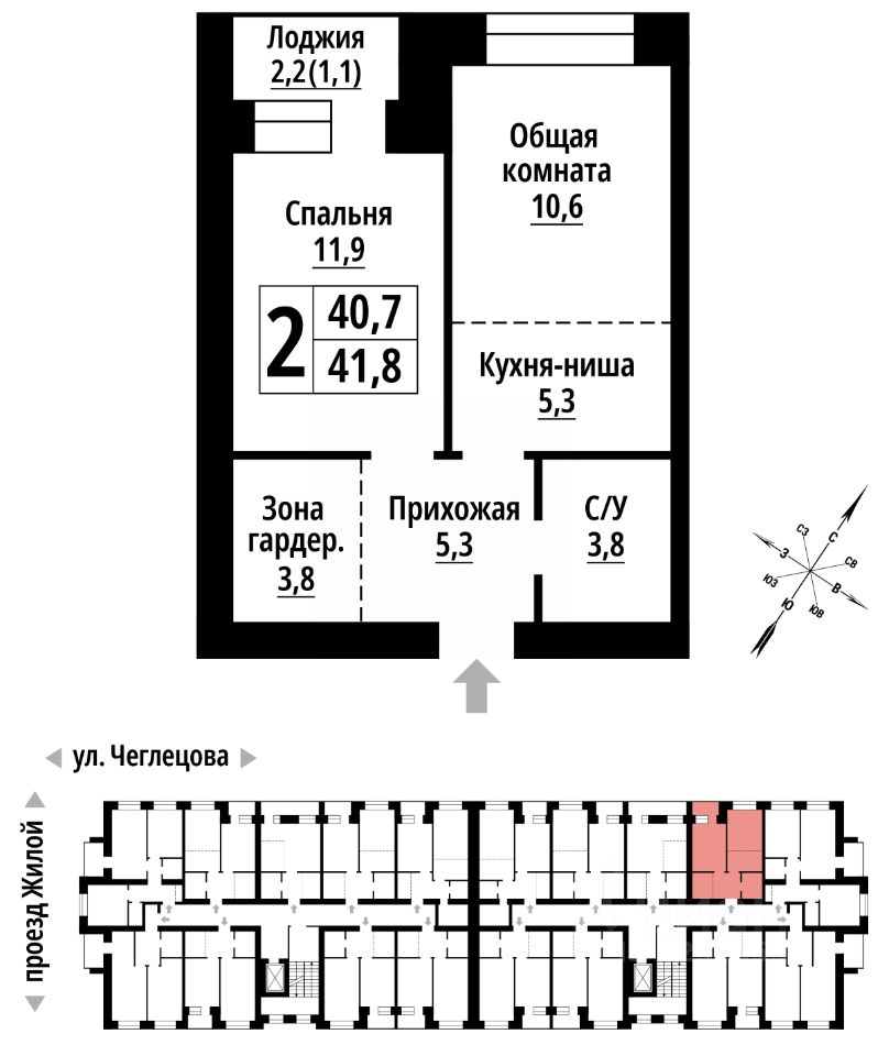 Продаётся 2-комнатная квартира в строящемся доме (Корпус 1), срок сдачи: II-кв. 2027, общей площадью 41 кв.м., на 2 этаже. ЖК "Тургенев" на ул. Чеглецова, 25а представляет из себя два кирпичных здания высотой 9 этажей.