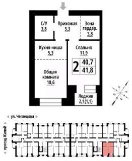 Продаётся 2-комнатная квартира в строящемся доме (Корпус 1), срок сдачи: II-кв. 2027, общей площадью 41 кв.м., на 2 этаже. ЖК "Тургенев" на ул. Чеглецова, 25а представляет из себя два кирпичных здания высотой 9 этажей.