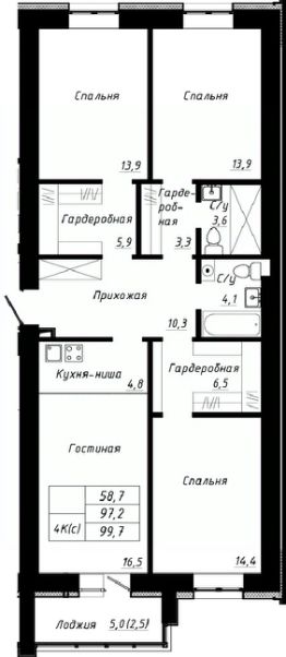 99,7 м²