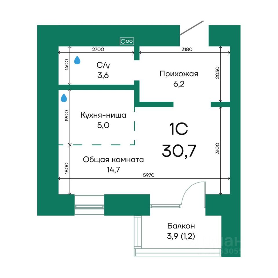 Продаётся 1-комнатная квартира в строящемся доме (Корпус 2), срок сдачи: III-кв. 2026, общей площадью 30.7 кв.м., на 10 этаже.