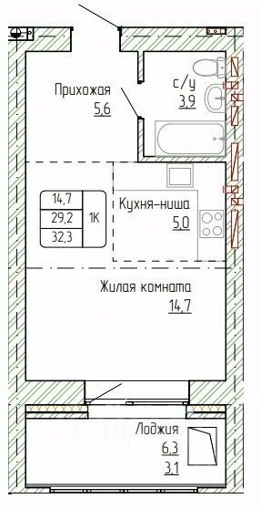 Продаётся 1-комнатная квартира в строящемся доме (Дом 1), срок сдачи: II-кв. 2027, общей площадью 32.3 кв.м., на 6 этаже. Жилой дом от специализированного застройщика "Жемчужина" располагается в г. Новоалтайске на ул. Титова, 6. Кирпичный дом состоит из 3-х блок-секций (БС 1 - 9 этажей, БС 2 - 14 этажей, БС 3 - 9 этажей), в каждой блок-секции имеется два входа и один лифт. В новостройке 225 квартир площадью от 31 кв.м. до 80 кв.м., также предусмотрены помещения кладовых в подвальной части дома. Сдача дома - 2 кв 2027 г.