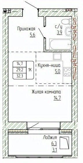 Общая площадь32,3 м²