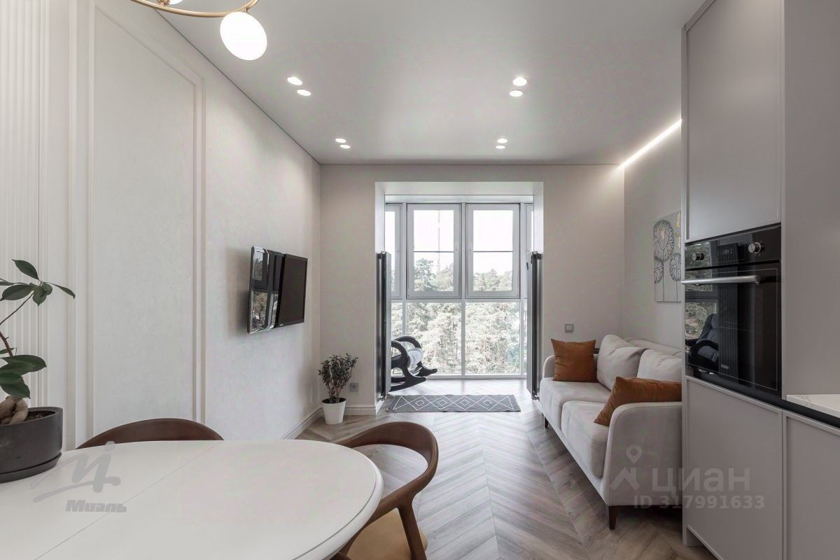 Очень комфортная кухня-гостиная, плавно переходящая на балкон