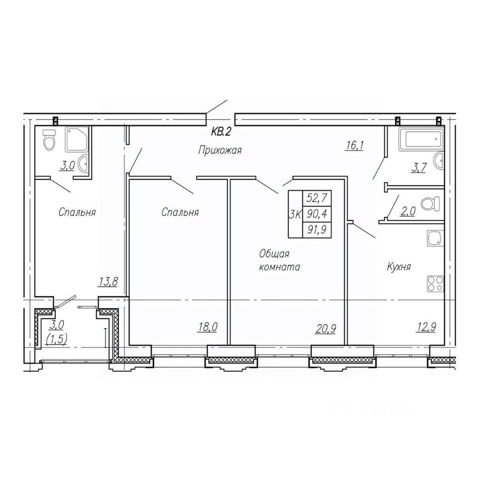 91,9 м²