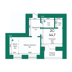 Продаётся 2-комнатная квартира в строящемся доме (Корпус 2), срок сдачи: III-кв. 2026, общей площадью 44.7 кв.м., на 5 этаже.
