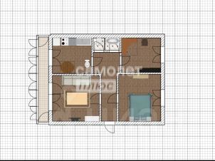 Общая площадь квартиры- 56.50 кв.м., кухня - 7 кв.м.