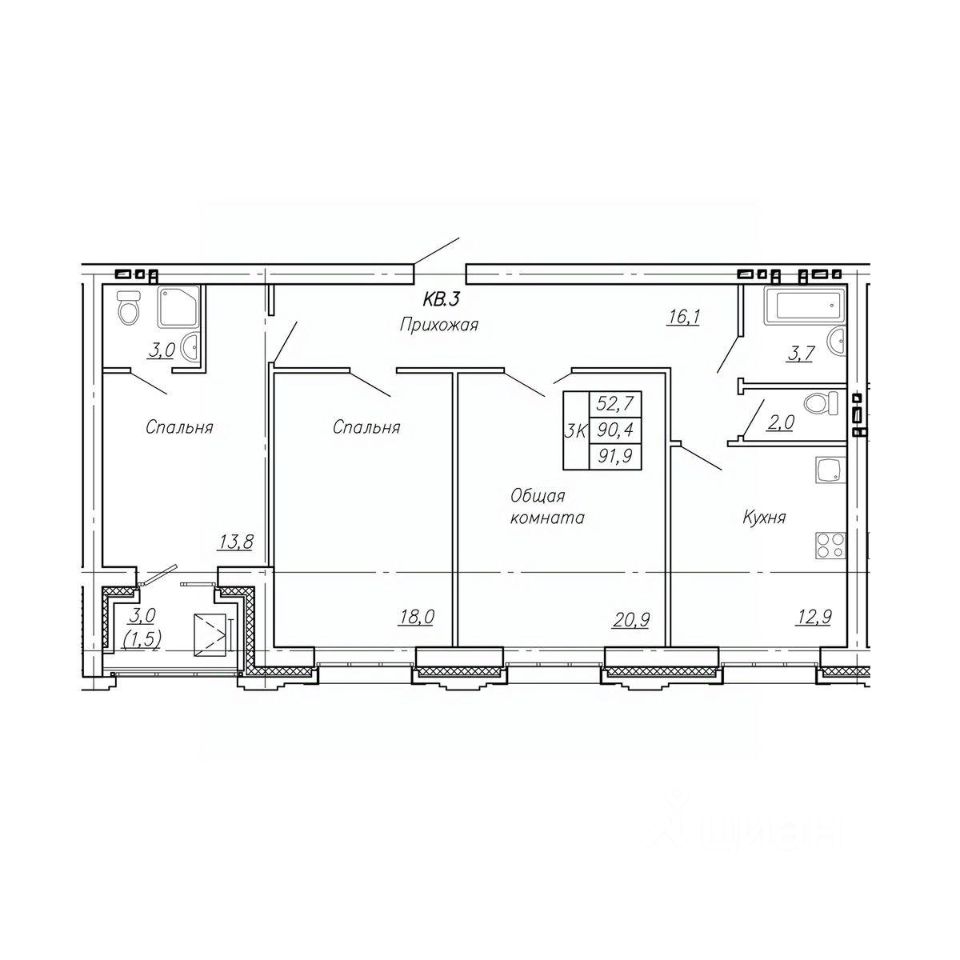 Продаётся 3-комнатная квартира в строящемся доме (Дом 1), срок сдачи: I-кв. 2027, общей площадью 91.9 кв.м., на 3 этаже. Новый жилой комплекс от Специализированного застройщика "Прометей" расположен по адресу: г. Барнаул, по ул. Приречная.