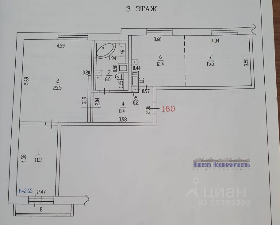 Высота потолков: 2,8 м