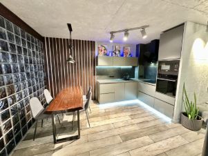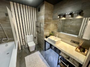 Общая площадь составляет 55 кв. м, из которых 40 кв. м — жилая площадь и 5 кв. м — кухня. В квартире красивый панорамный вид на город.