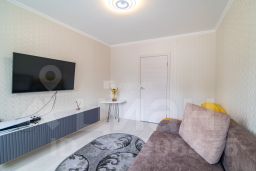 В квартире сделан евроремонт, что позволяет новым владельцам сразу заселиться и наслаждаться комфортом. На полу застелен ламинат, потолки в комнатах натяжные. Санузел раздельный, полностью в кафеле. В жаркую летнюю погоду,в квартире будет очень комфортно, т.к новому жильцу остается кондиционер. Окна выходят во двор, поэтому в квартире много света.