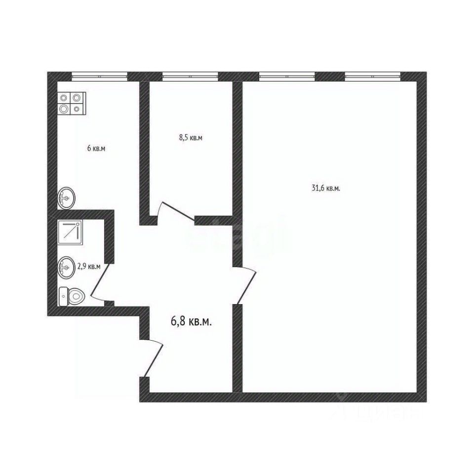- гостиная 31,6 кв.м.