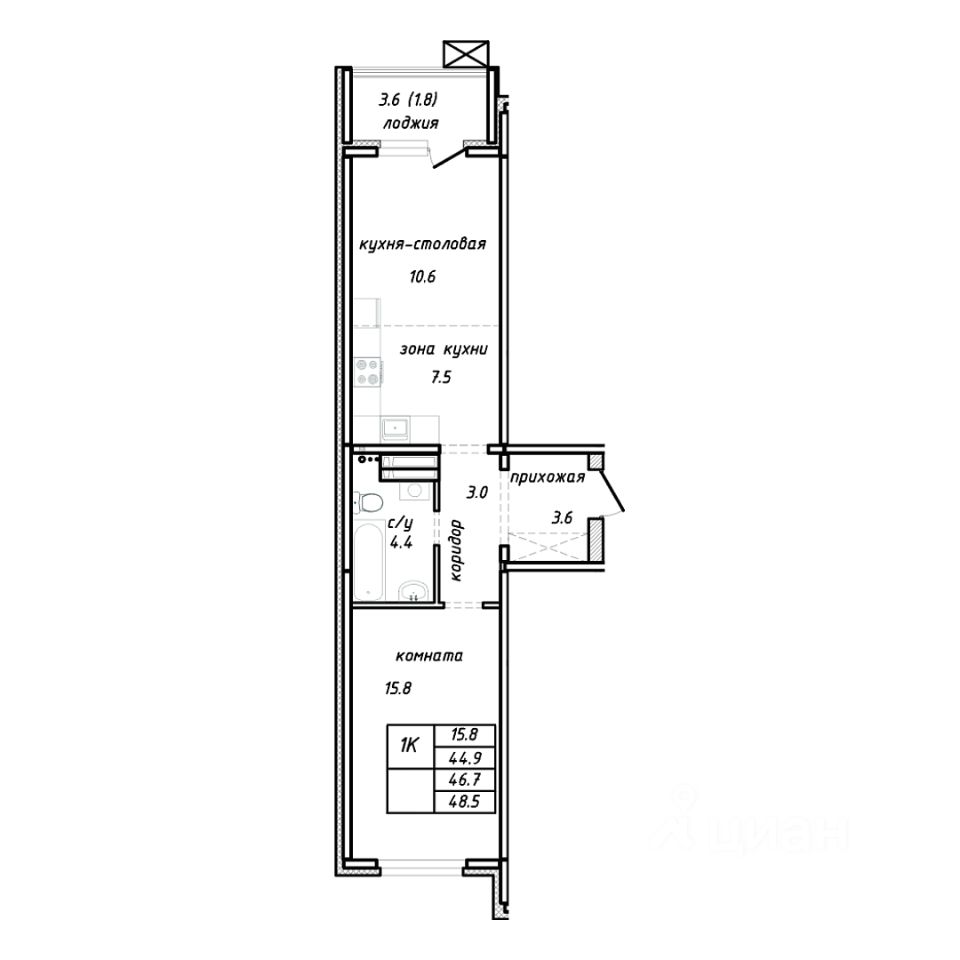 Продаётся 1-комнатная квартира в строящемся доме (Дом 1), срок сдачи: I-кв. 2027, общей площадью 46.7 кв.м., на 5 этаже. Новый жилой комплекс "Колос" от Специализированного застройщика "Восход" расположен по адресу: г. Барнаул, по ул. Интернациональная.