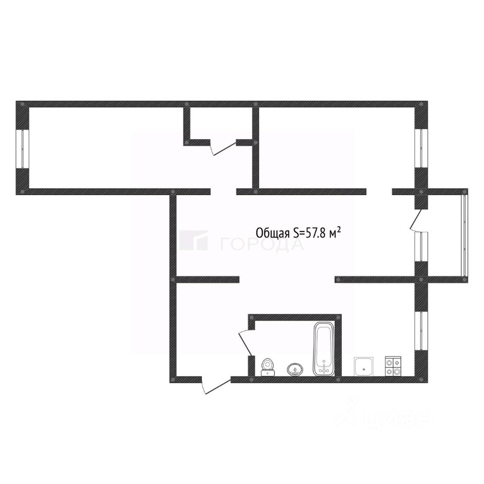 *Просторная планировка* 58 м² с отдельными комнатами, бонусом кладовка , идеально для семьи!