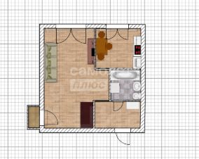 Квартира площадью 33,2 м² находится на 1-ом этаже кирпичного дома.