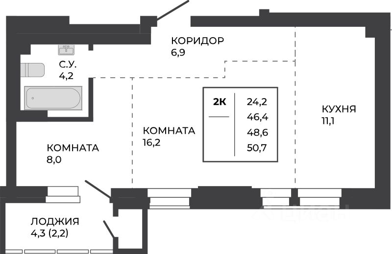 48,6 м²