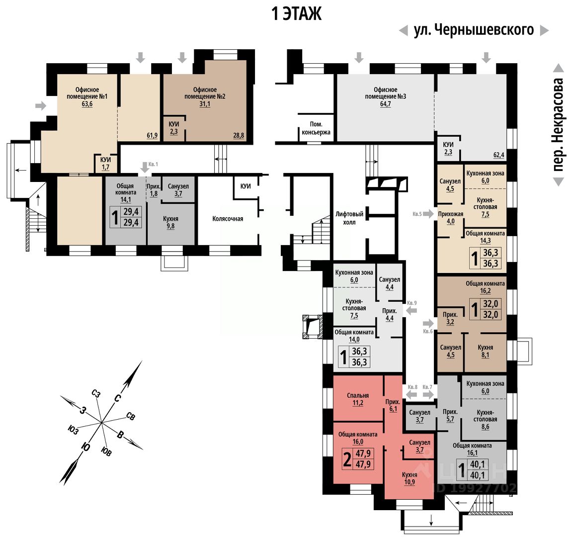 Продаётся 1-комнатная квартира в строящемся доме (Чернышевского, 39 (Дом 1)), срок сдачи: IV-кв. 2027, общей площадью 47 кв.м., на 1 этаже. Новый жилой комплекс от группы компаний "Жилищная Инициатива" расположен по адресу: г. Барнаул, по ул. Чернышевского.