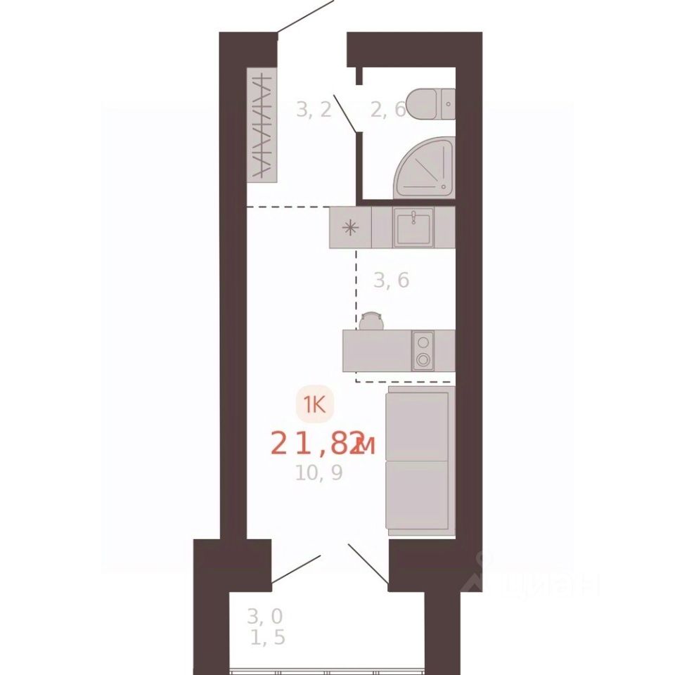 21,8 м²