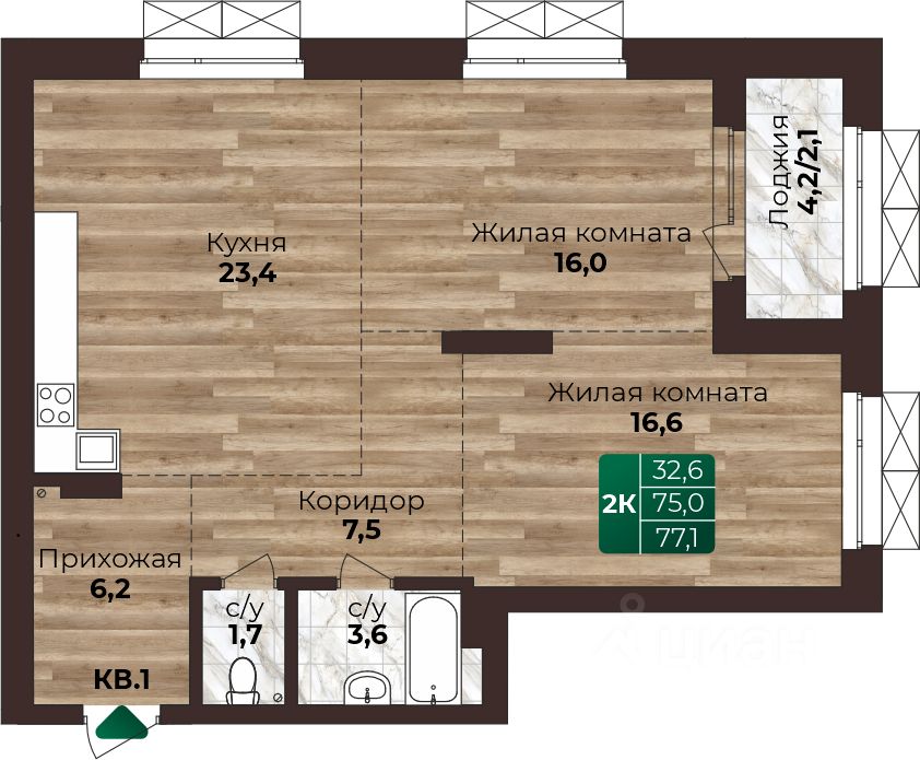 77,1 м²