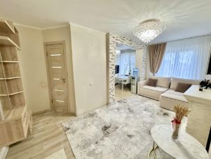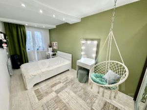 В квартире выполнен евроремонт, все комнаты оформлены со вкусом и готовы к комфортному проживанию. Совмещенный санузел оснащен современной сантехникой. Удобная планировка включает три лоджии, из окон открывается вид во двор, школьный стадион, что обеспечивает тишину и уют. В квартире есть все необходимое для жизни — встроенная мебель и техника, поэтому вы сможете сразу же переехать.